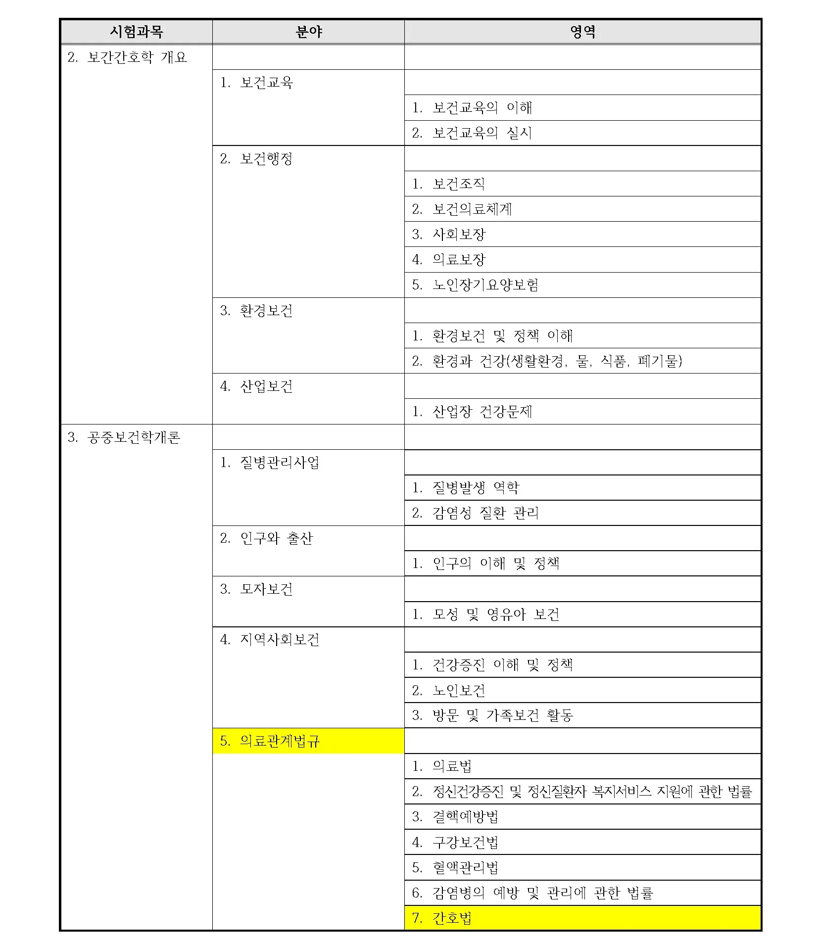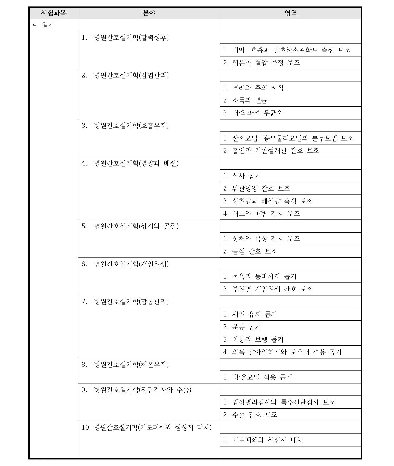 국가시험 출제범위