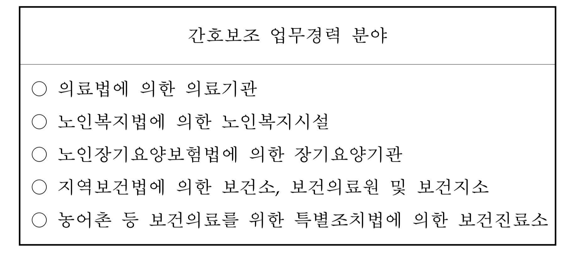 근무 가능 기관 | 병원급 이상 포함 모든 의료기관 | 병원급: 간호사 보조만 가능