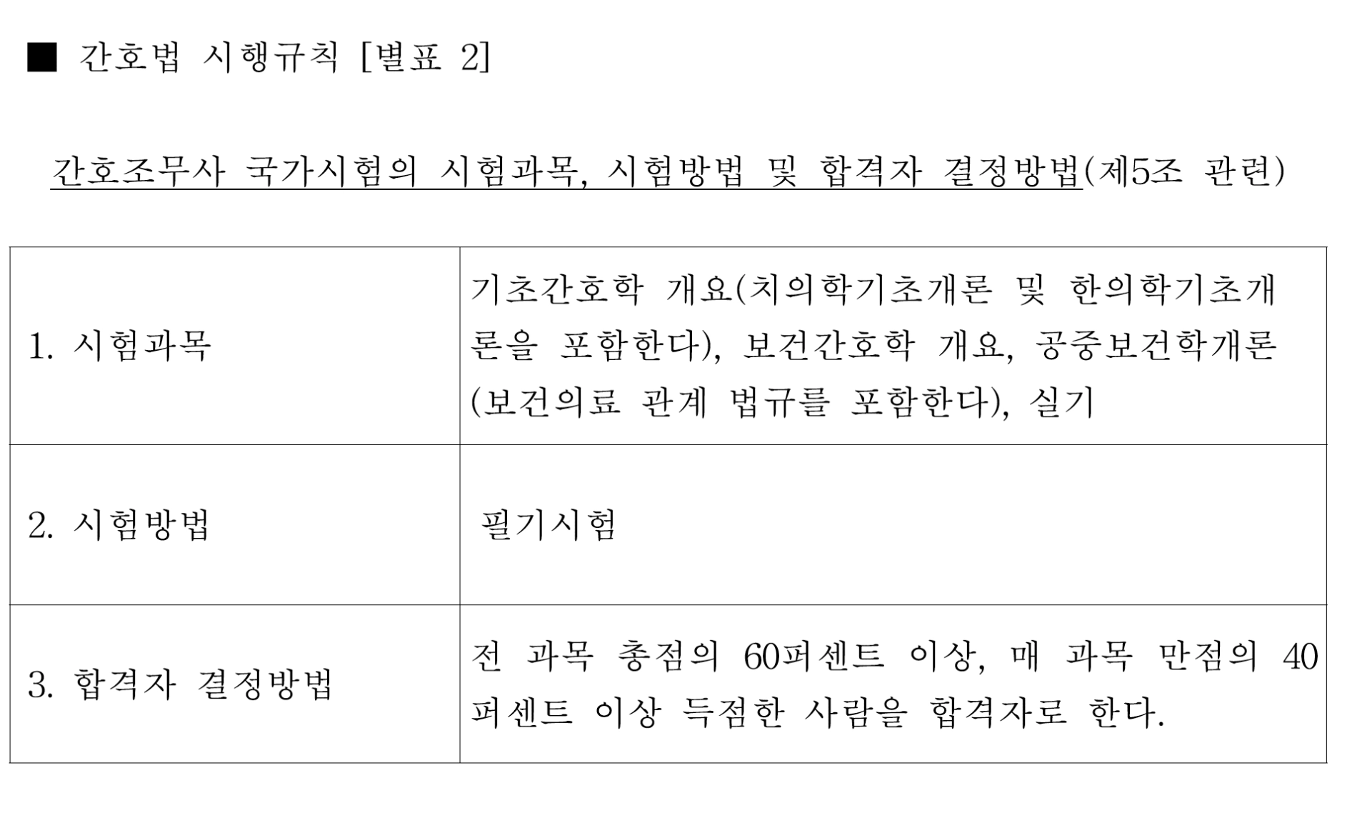 간호법 시행규칙 제5조(간호조무사 국가시험 과목 등)